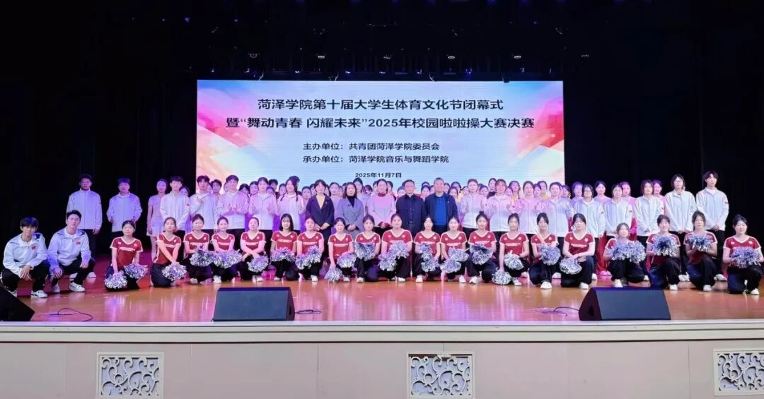 比赛中,各参赛队创意十足、亮点纷呈。高难度的托举动作如雏鹰展翅般彰显青春张力,巧妙融入学科元素的“电流式”队形模拟脉冲流转,队员们灵动的身姿在光影间跃动,将青春的炽热与力量同团队的默契与协作展现得淋漓尽致,现场掌声与喝彩声此起彼伏。经过激烈角逐,教师教育学院、体育与健康学院代表队荣获一等奖,郓城分校、政法学院、人文与新闻传播学院代表队荣获二等奖,农业与生物工程学院(牡丹学院)、药学院、外国语学院、单县分校、物理与电子工程学院代表队荣获三等奖。