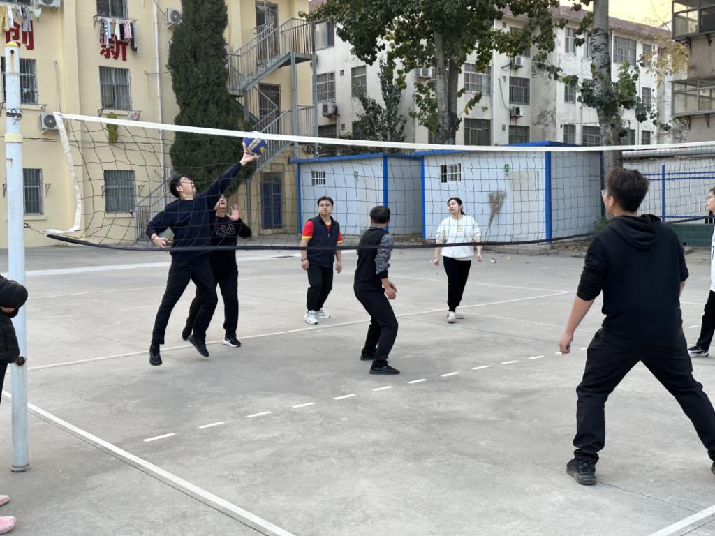 赛场上,队员们个个精神饱满,热情高涨,全力投入到比赛之中。赛场外,同学们的呐喊声、助喊声此起彼伏。一个个精彩扣球、拦网,将老师和同学们那股拼劲展现的淋漓尽致。比赛最终以教职工队领先而夺冠结束。