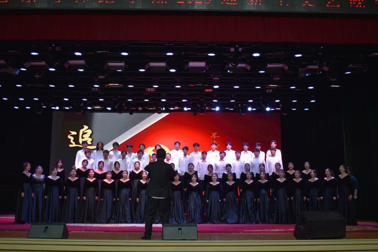 最后,音乐与舞蹈学院合唱团为观众带来了合唱《八骏赞》、《追寻》,歌曲《追寻》展现了共产党人上下求索,为共产主义事业终身奋斗的画卷。音乐与舞蹈学院合唱团全体师生满怀热情,歌颂了共产党人前赴后继、全心全意为社会主义事业奋斗,不怕艰难的精神。