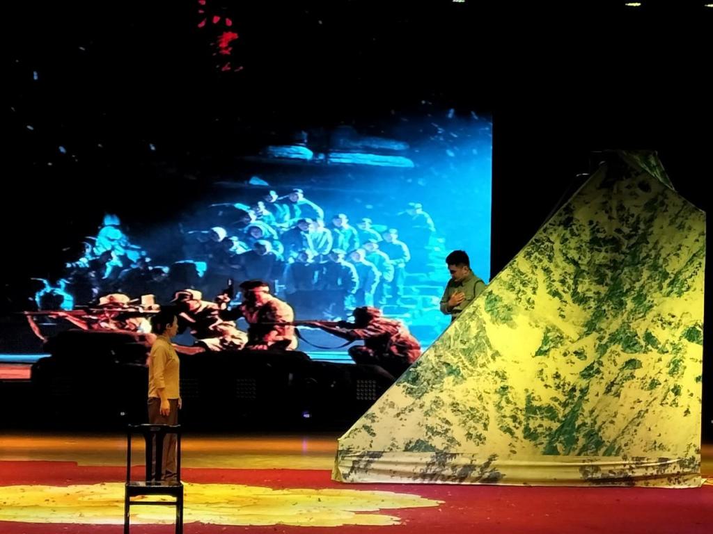 男声独唱《担当之歌》,高亢激昂、铿锵有力的歌声,表达了中华儿女爱党爱国的赤子情怀,抒发了永远跟党走的豪情壮志。