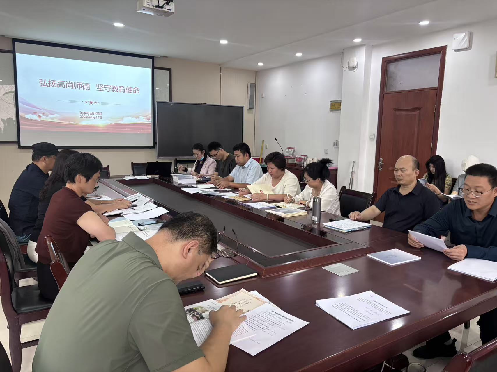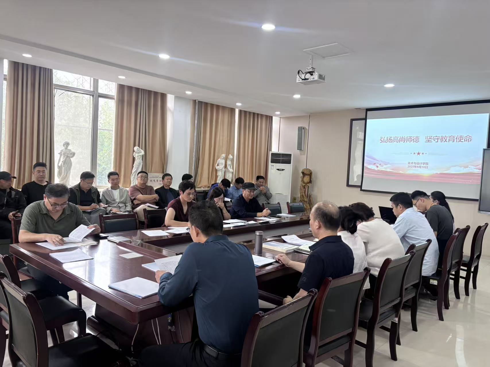 为进一步加强学院师德师风建设,筑牢教职工教书育人思想根基,9月18日,美术与设计学院开展“弘扬高尚师德,坚守教育使命”为主题的师德建设教育专题会议,全体教职工参会。