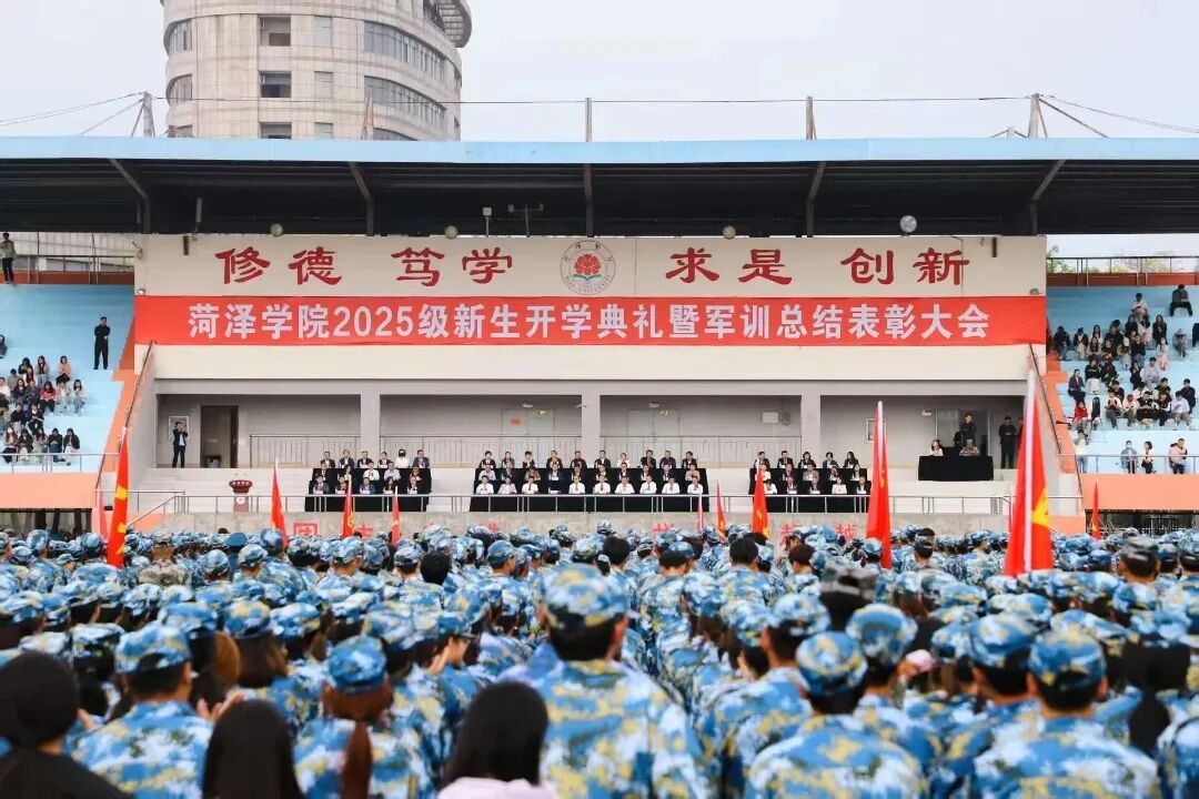 9月21日,菏泽学院2025级新生开学典礼暨军训总结表彰大会于风雨操场隆重举行。院党委书记李谨辰、党委副书记宋艳、全体辅导员、新生班主任及全体新生共同见证这场青春盛宴。