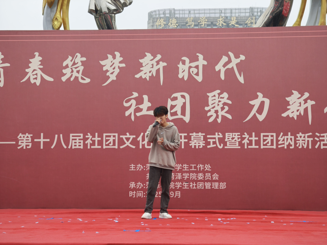 为丰富音乐与舞蹈学院学生校园文化生活,彰显社团文化魅力,推动社团工作全方位进步,9月27日,音乐与舞蹈学院音乐爱好者协会和曹风戏社两个校级社团,在辅导员冯兴玉的带领下,积极参加由菏泽学院学生工作处联合共青团菏泽学院委员会主办的“青春筑梦新时代,社团聚力新征程”第十八届社团文化节开幕式暨社团纳新活动。