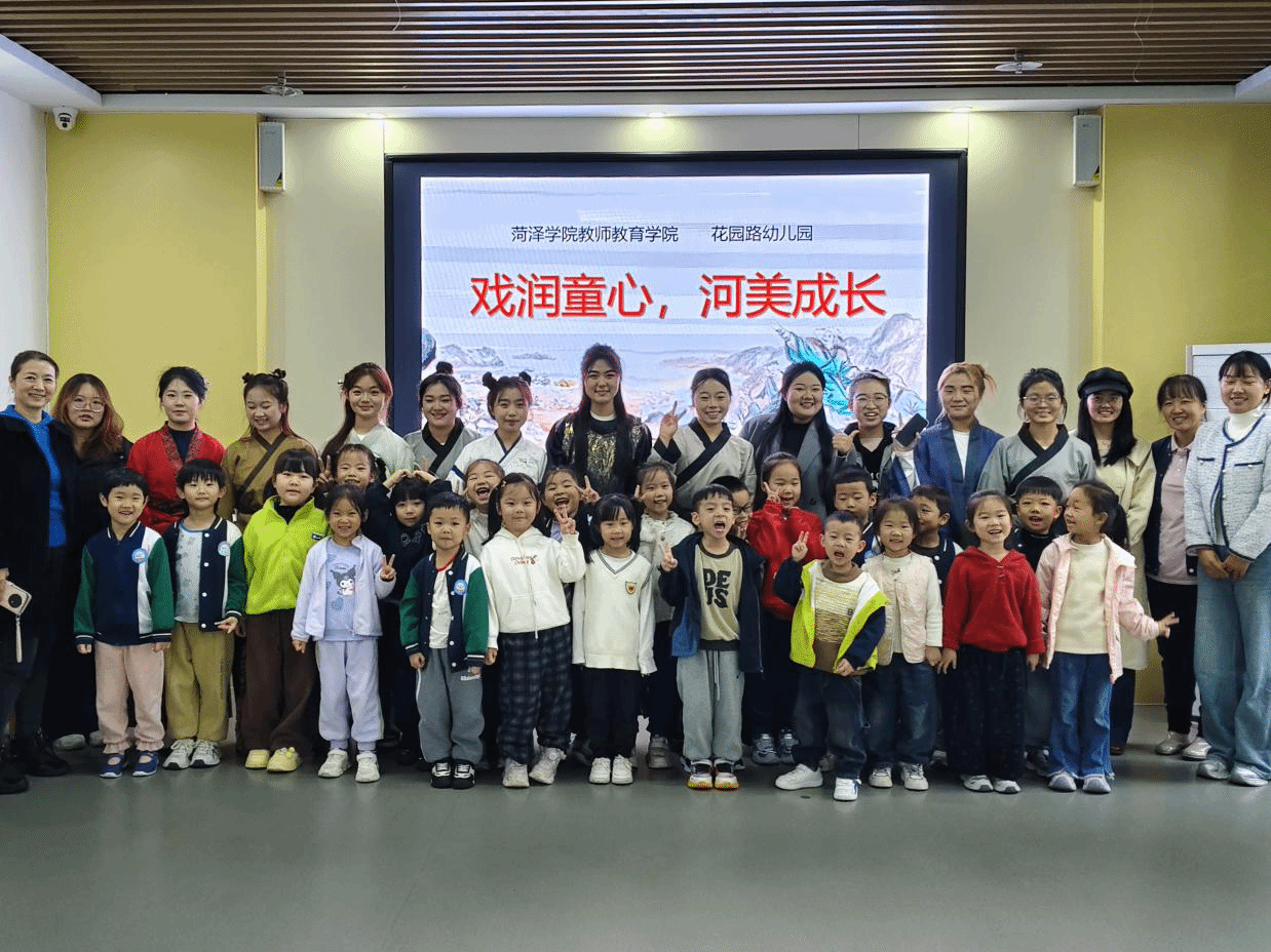 10月17日下午,教师教育学院摘星戏剧工作坊的同学们前往牡丹区花园路幼儿园,开展了名为“戏润童心,河美成长”的教育戏剧实践活动。本次活动融合了戏剧展演与情景游戏,为孩子们提供了一场独特的黄河文化体验。现场气氛活跃,深受幼儿及教师们的欢迎。