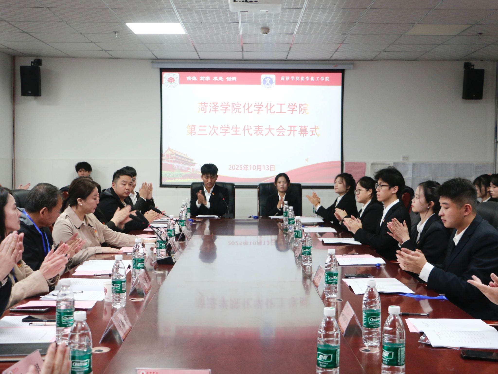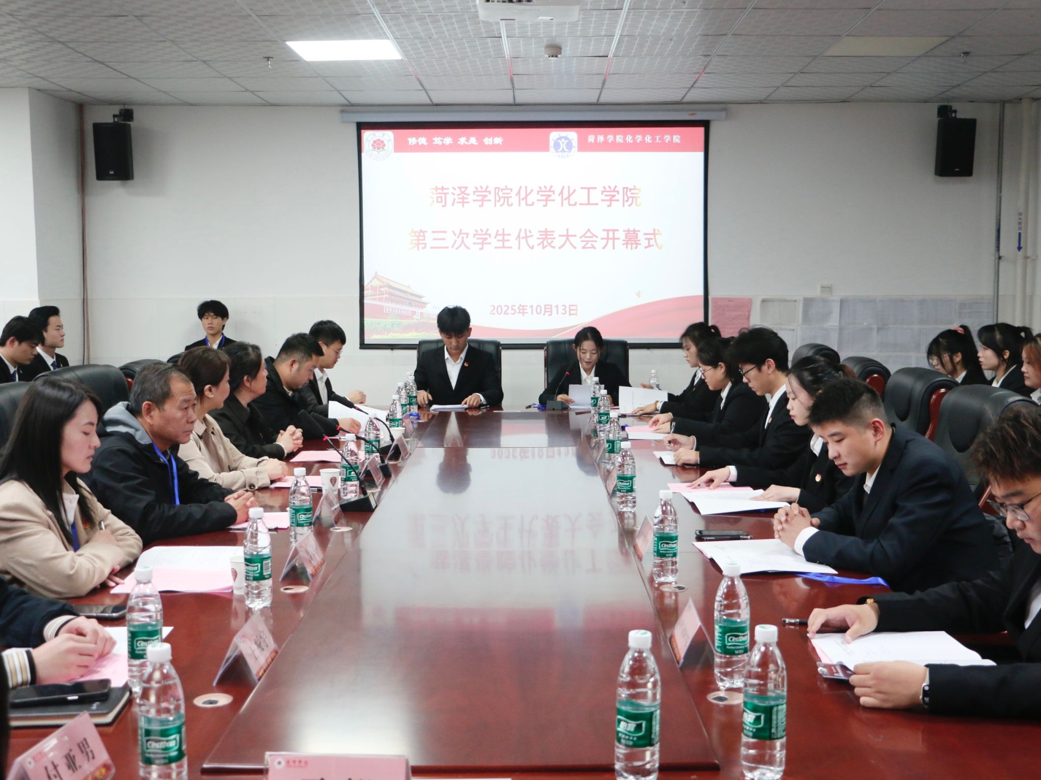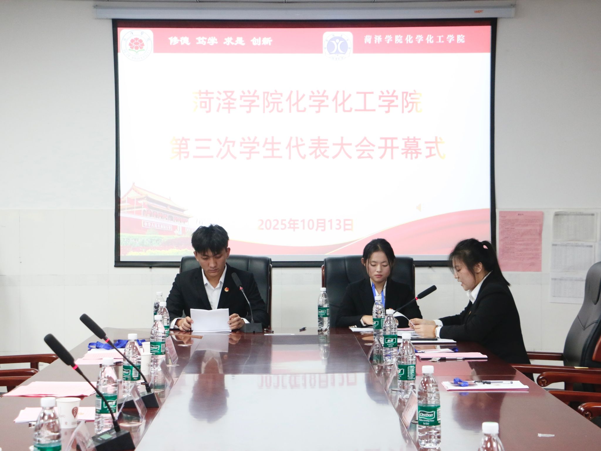 10月13日下午,菏泽学院化学化工学院第三次学生代表大会在综合实验楼E224隆重召开。菏泽学院团委书记王盛楠、化学化工学院党委书记王化荣、化学化工学院党委副书记李建芳、校团委教师冯兴玉,化学化工学院全体辅导员以及各兄弟学院学生会主席团特邀代表携化学化工学院学生代表参加了此次会议。会议由化学化工学院学生会主席团成员莫小为主持。