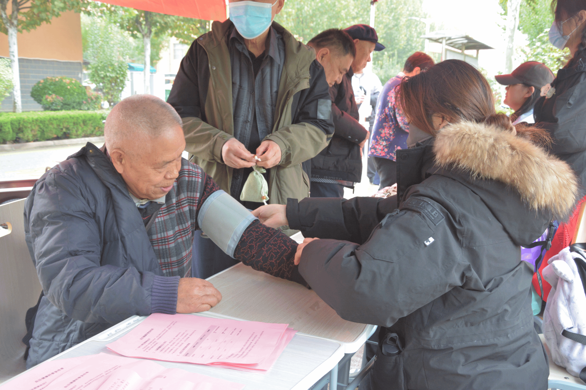 在健康检测区,志愿者用专业设备为老人免费测量血压,详细记录数据并标注时间。针对血压指标异常的老人,结合药学专业知识耐心给出低盐饮食、规律作息等调节建议;对数值显著异常者,及时提醒尽快到正规医疗机构就医,细致周到的服务赢得居民连连称赞。同时,志愿者还为老人提供按摩服务,以轻柔手法缓解肩颈、腰背疲劳,让长辈在互动中切实感受到放松。