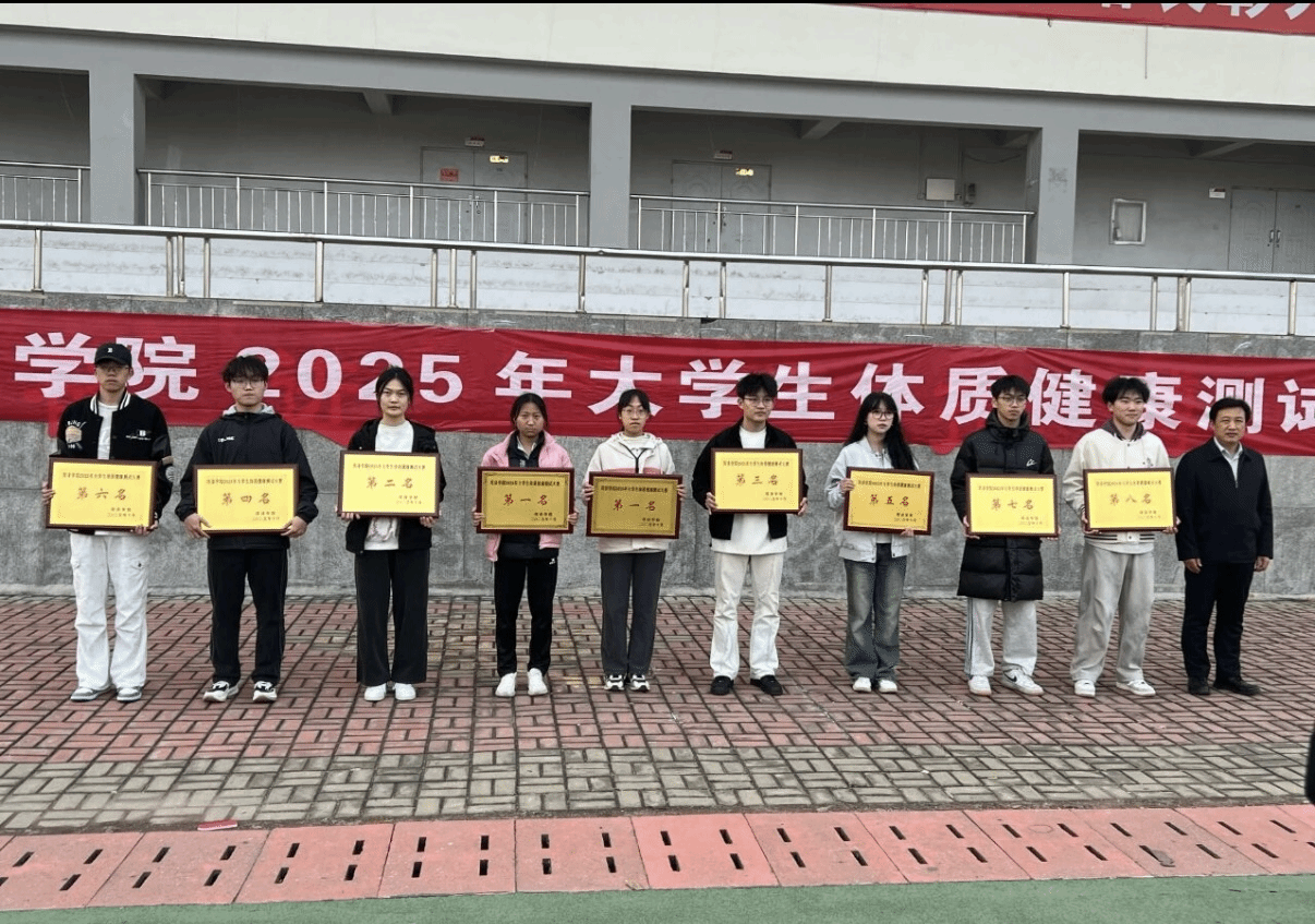 10 月 26 日,菏泽学院 2025 年大学生体质健康测试大赛在学校田径场圆满落幕。化学化工学院代表队凭借默契的团队配合、扎实的体能基础与永不言弃的奋斗精神,在激烈比拼中崭露头角,最终荣获团体总分第六名的佳绩。