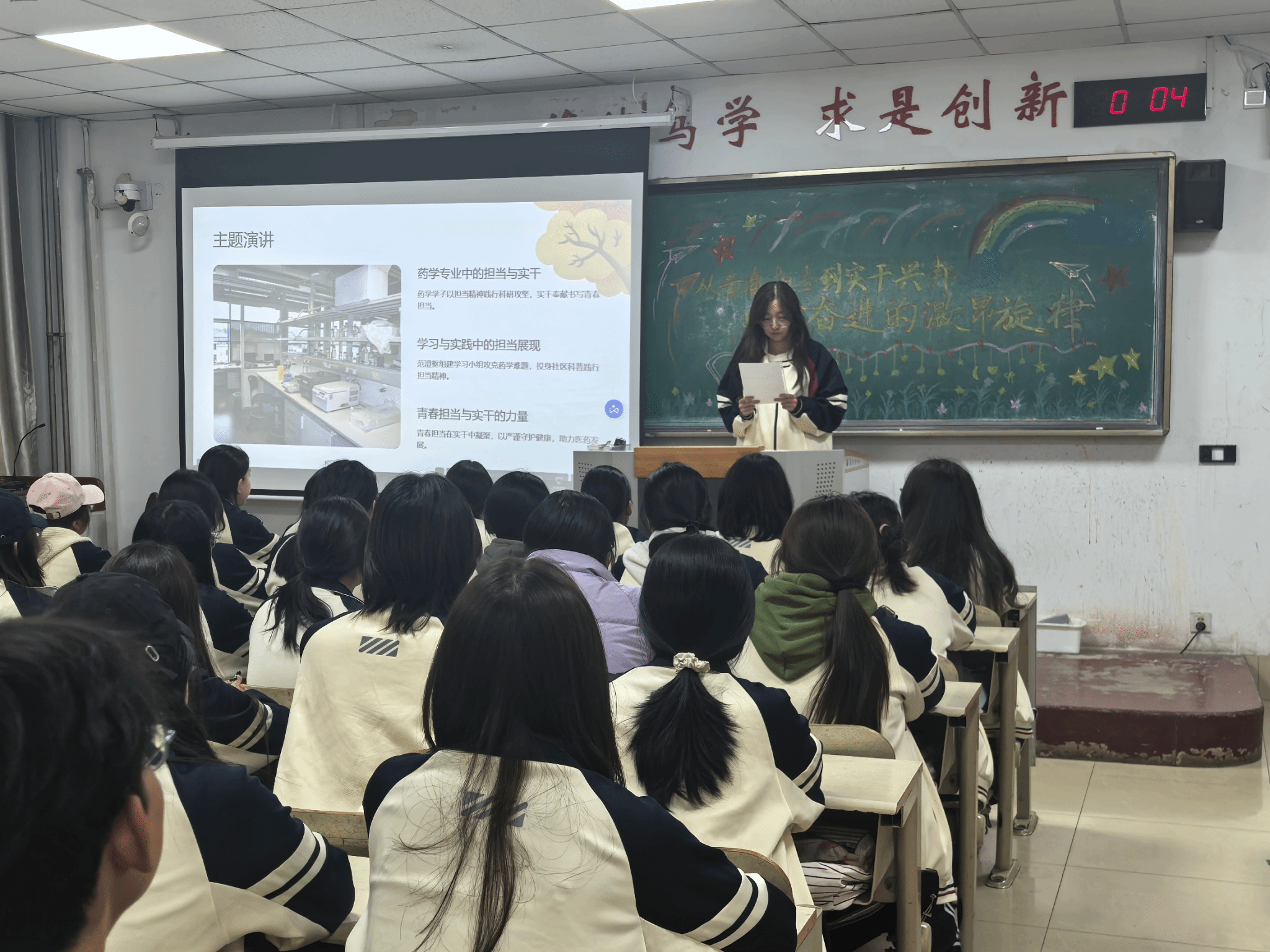 11月13日晚,药学院在9号楼部分教室开展“从青春担当到实干兴邦:时代奋进的激昂旋律”周四论坛活动,药学院2025级全体学生参与此次论坛。