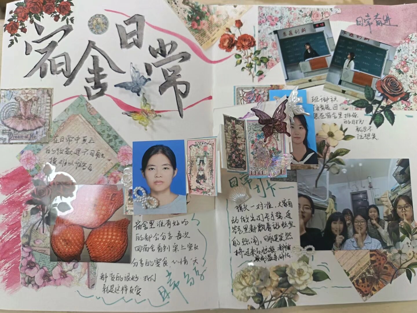 本次活动以团体合作的方式,用多彩涂鸦搭配卡通元素,在手账中记录下宿舍成员“最深印象”、“再见面时”等重要时段的宿舍成长回忆。一幅幅手绘勾勒了鲜活场景,在充满青春活力与个性色彩的同时,又兼具温馨意义与巧思创意,展现了宿舍的温馨与奋进氛围。