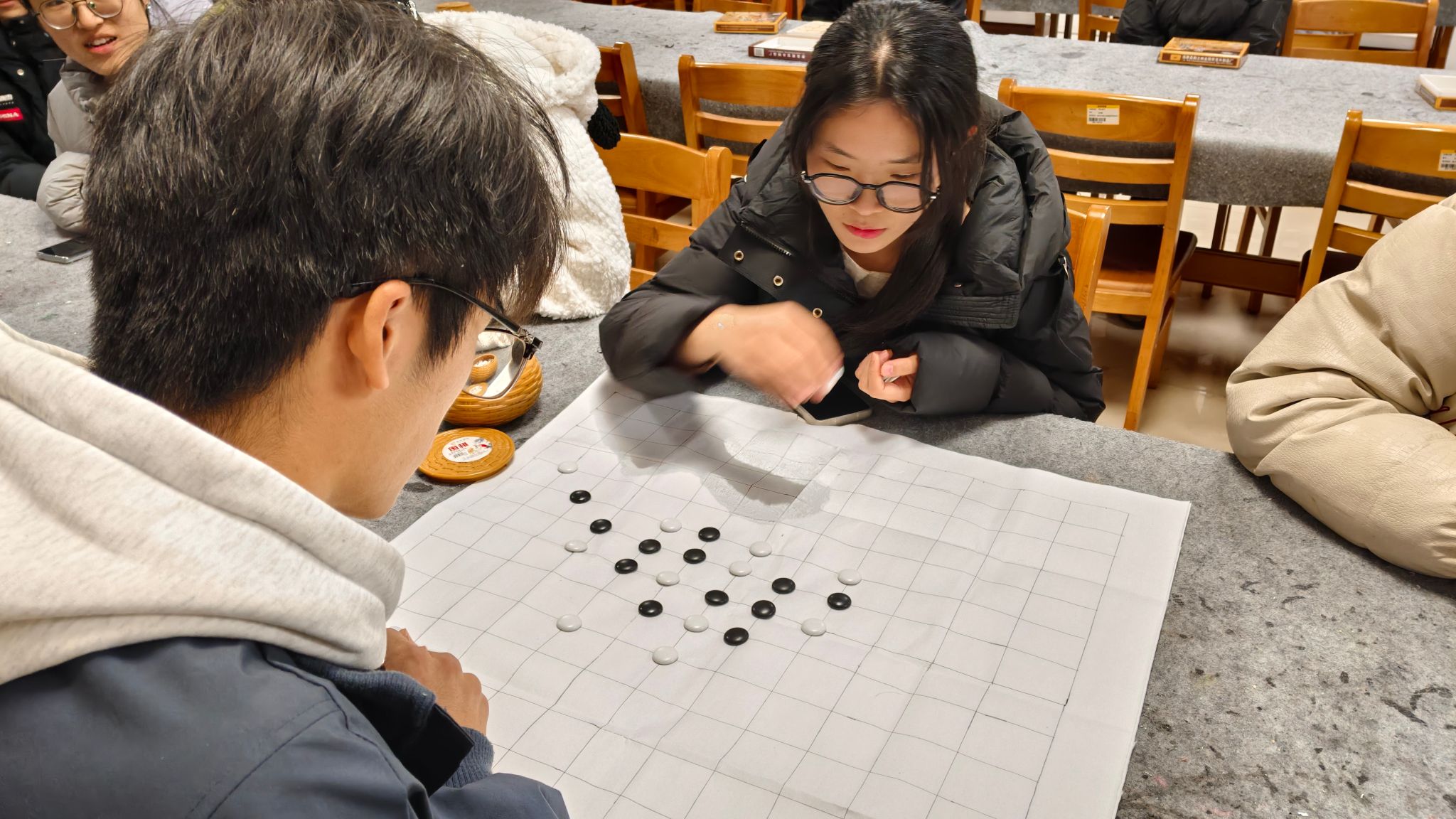 本次活动精心设置五子棋、象棋、跳棋三大经典项目,既涵盖考验策略布局的竞技类别,也包含注重趣味互动的休闲项目,兼顾不同棋艺水平同学的参与需求。活动现场布置简洁有序,棋盘棋子整齐摆放,营造出专注而融洽的对弈氛围。比赛中,选手们精神抖擞、全神贯注,棋盘之上风云变幻:象棋对弈中,楚河汉界两侧兵来将挡、步步为营,选手们深思熟虑每一步落子,时而沉稳防守,时而果断进攻;五子棋赛场里,黑白棋子交错排布,选手们眼疾手快、巧妙布局,在攻防之间尽显智慧;跳棋桌上,彩色棋子跳跃穿梭,选手们相互配合、灵活走位,欢声笑语中传递着竞技的乐趣。