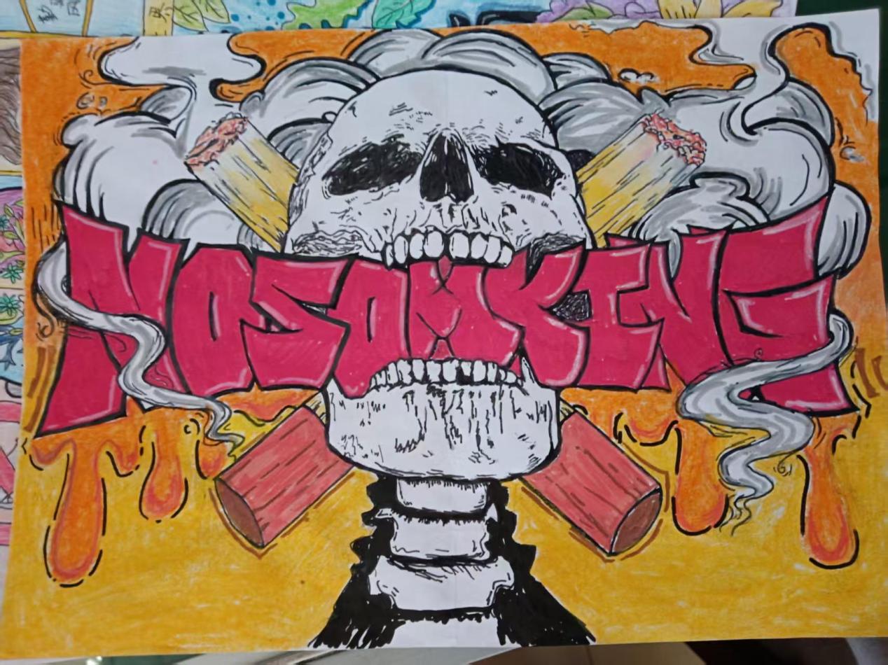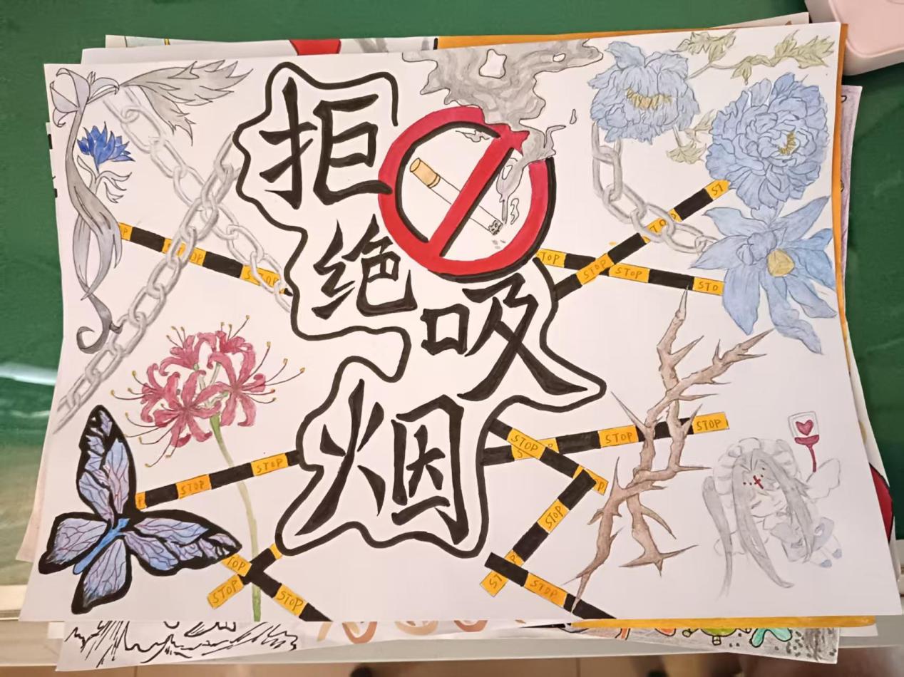 活动期间,同学们紧扣“烟熄,生命不息”核心主题,围绕“烟草危害具象化”“戒烟后的生机场景”“二手烟不良影响”等方向进行创作,作品形式丰富多样,涵盖水彩、水笔、手工等多种类型。大家以多元视角深度诠释禁烟理念:通过写实手法直观展现吸烟对呼吸道、肺部造成的严重损害。以宿舍、社团等校园场景为载体,传递“同伴互勉、共同拒烟”的真挚情谊;更借助青春活力的鲜活画面与烟味污浊的压抑氛围对比,彰显对健康生活的热切追求。最终,刘芮彤、陈浩等六位同学凭借丰富的想象力、独特的创意表达以及对主题的深刻诠释脱颖而出,荣获本次活动一等奖。