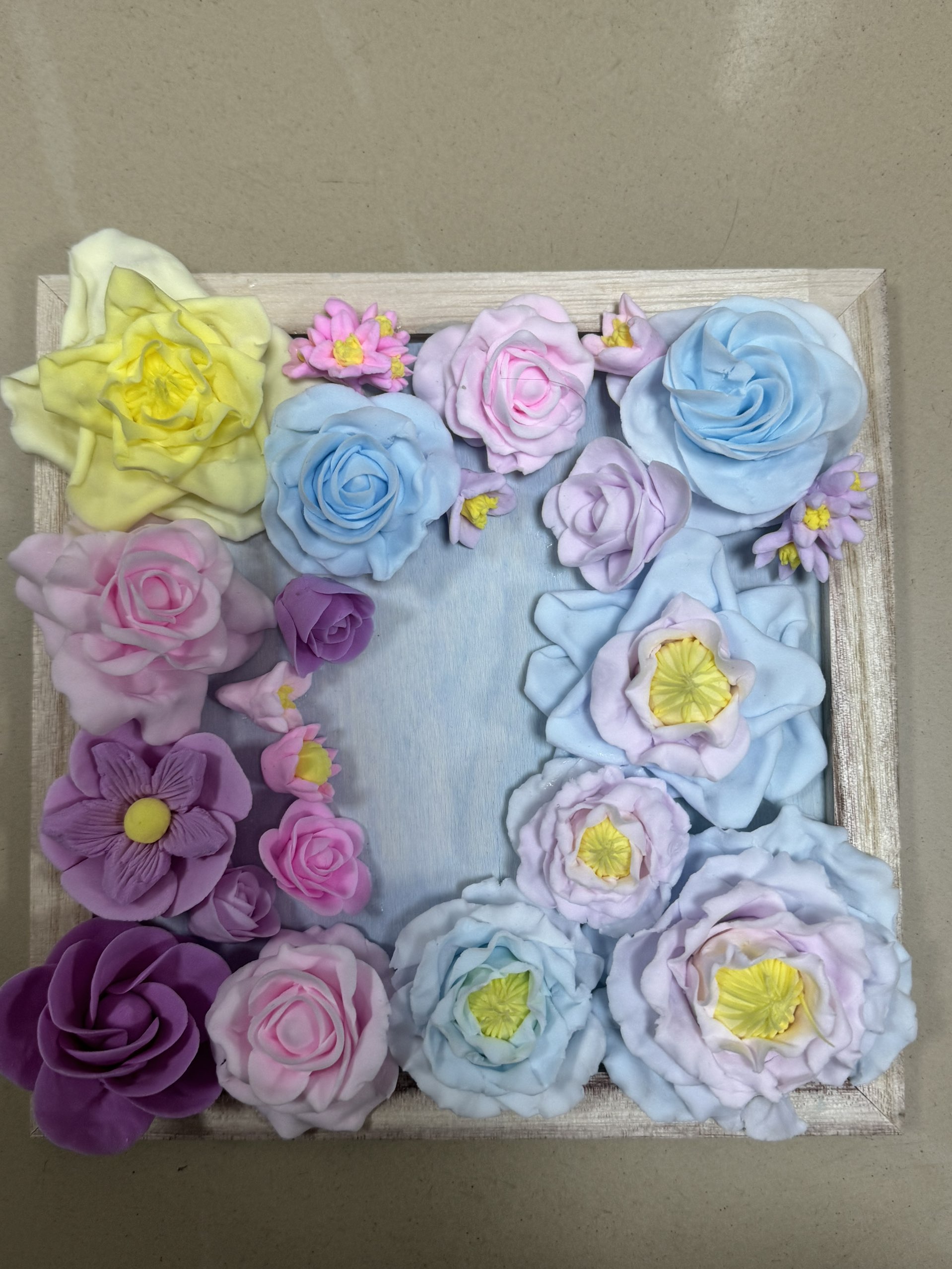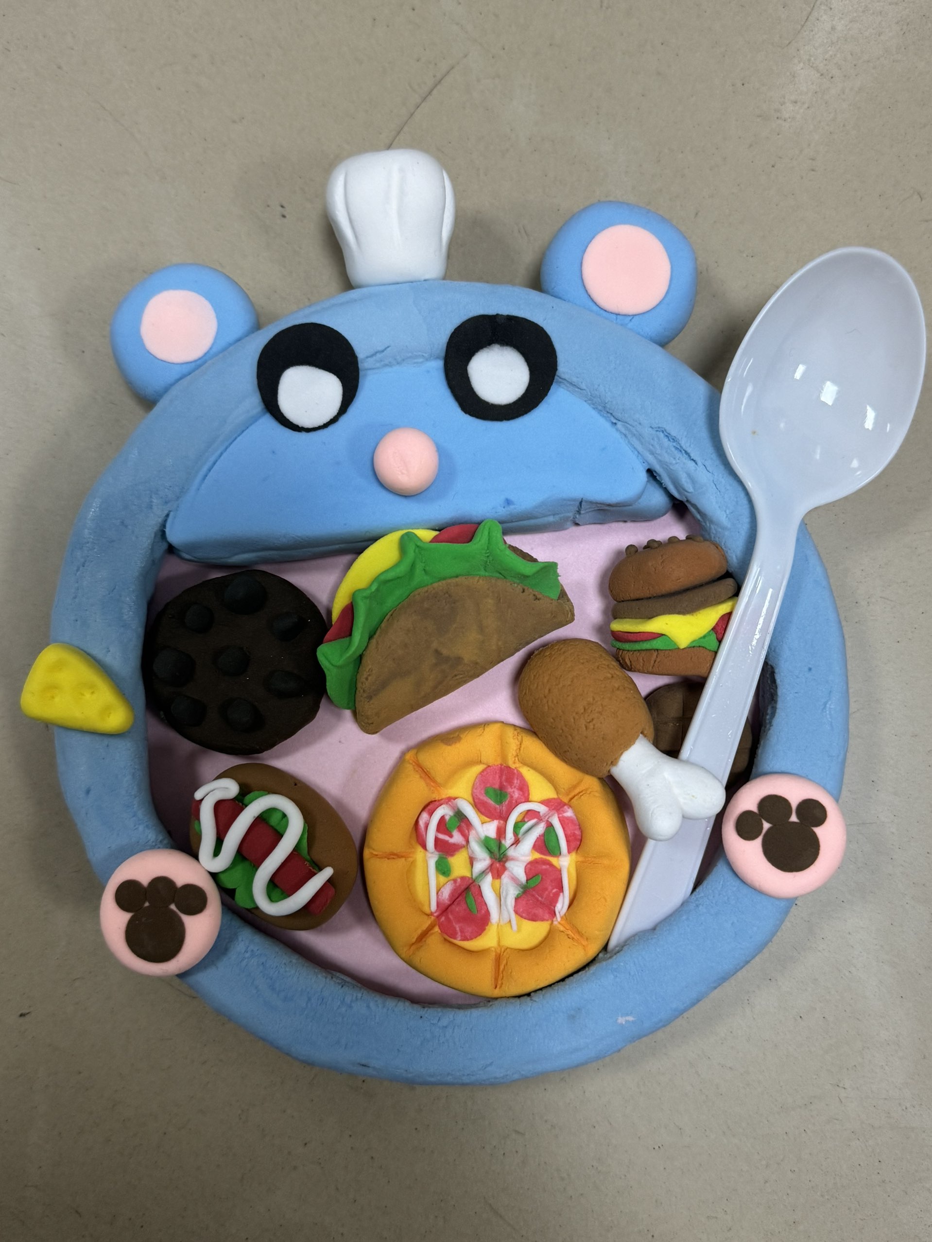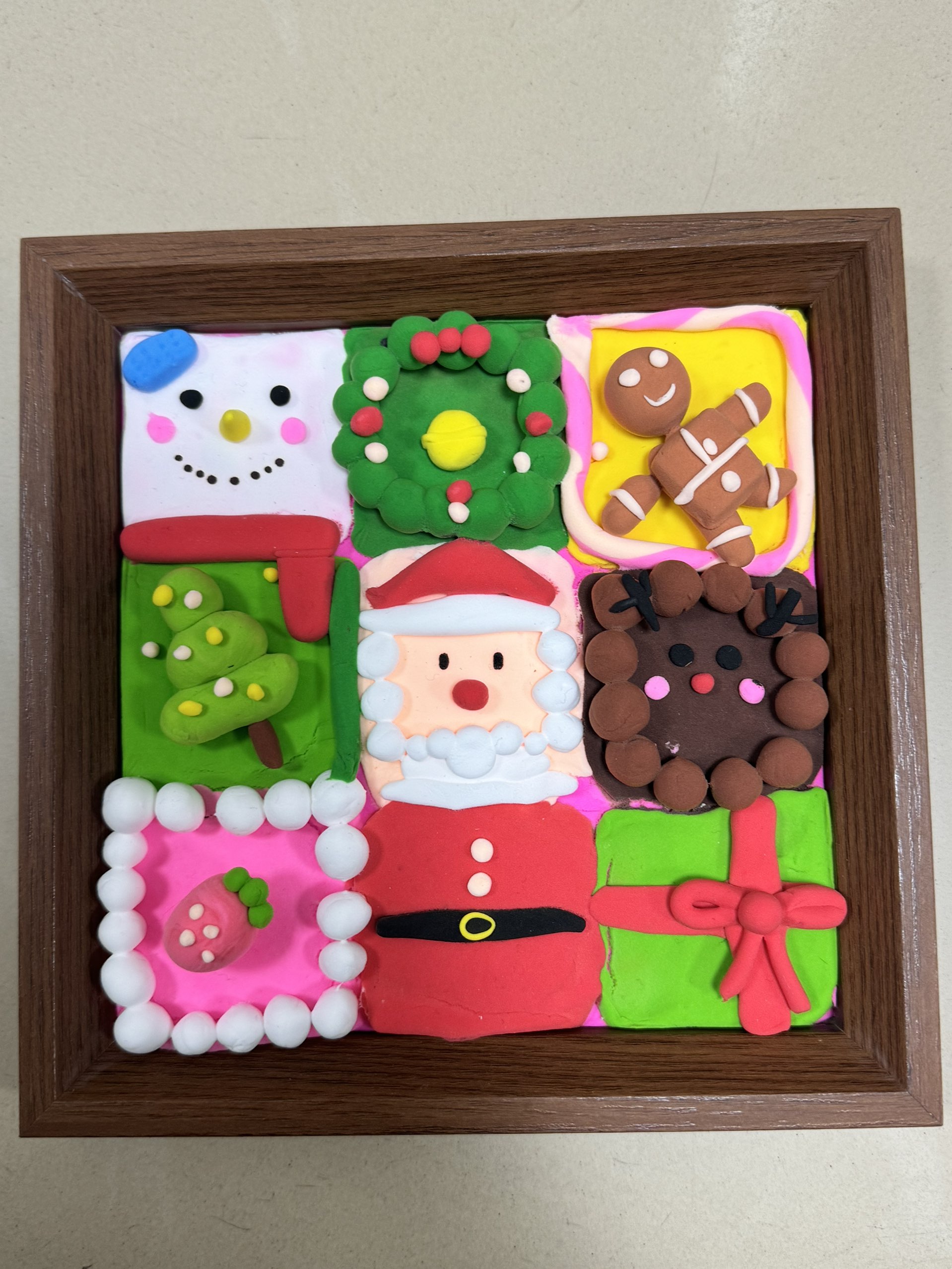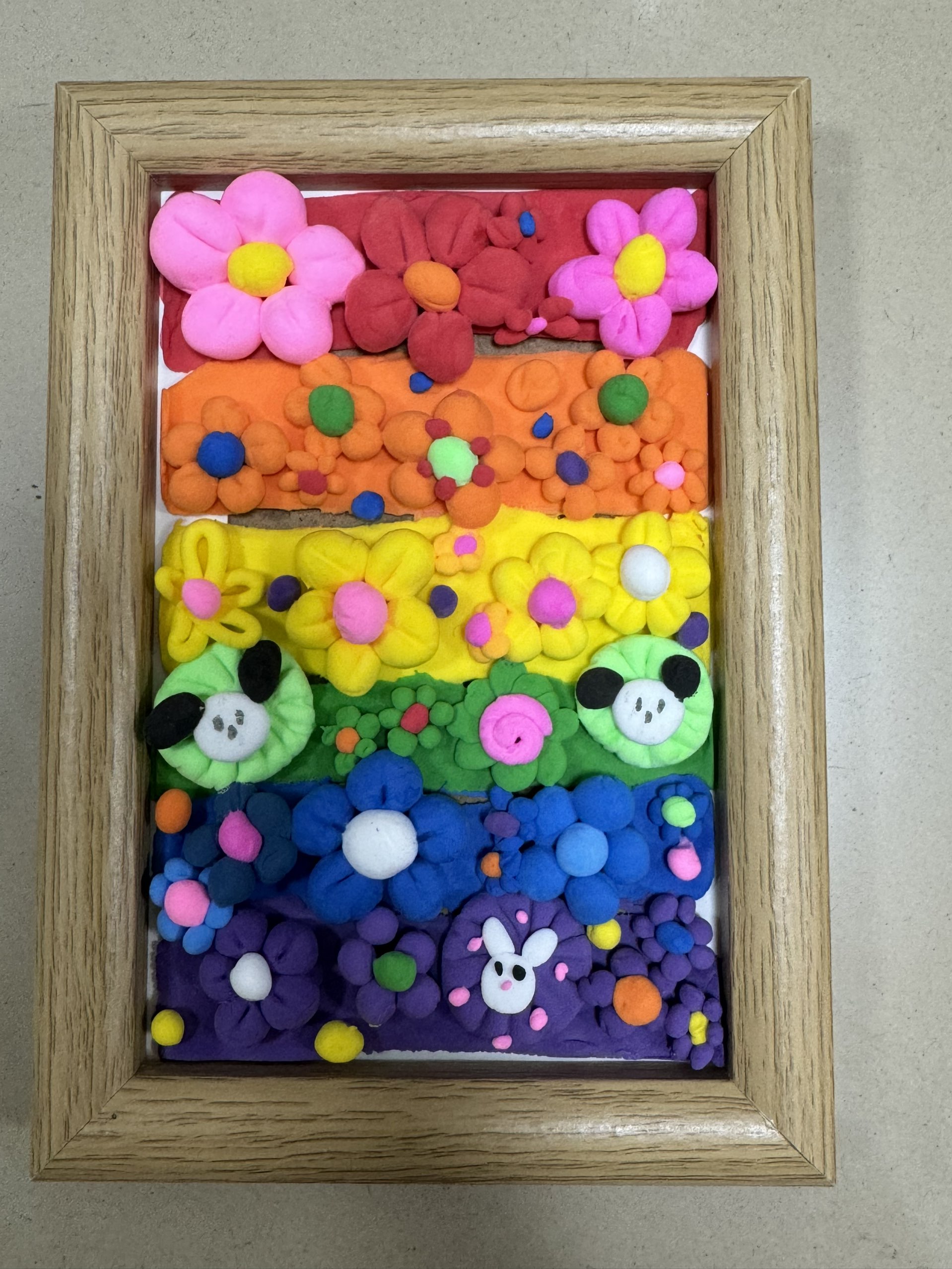 活动期间,同学们以相框为纸、粘土为笔,将情绪与创意揉进指尖的创作里。作品兼顾色彩搭配与故事表达,平面与立体层次交织成充满叙事感的微缩场景:缤纷花丛簇拥相框边缘,充满鲜活生机;萌趣卡通形象憨态可掬,传递治愈力量。每一方相框都成为独属于创作者的“情绪容器”。在搓、捏、贴的过程中,日常焦虑渐渐消解,心灵在沉浸式创作中得到舒缓与沉淀。同学们以粘土为媒介,在创作中解锁自我疗愈新方式。最终,结合作品创意与完成度综合评定,徐小鑫、李姝颖等三位同学凭借细腻的造型设计与温暖的情感表达,斩获本次活动一等奖。