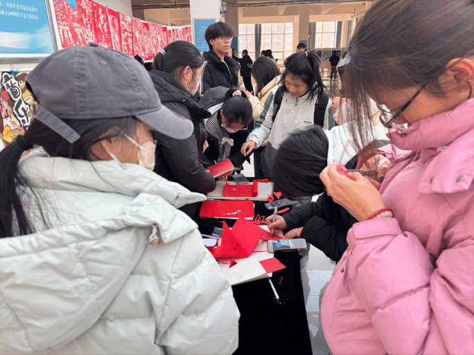 展览结合大学生视角与传统文化内涵,兼顾传承性与创新性,涵盖非遗传承类、校园特色类、文化融合类、手工环境创设类、现场体验互动等板块。参观过程中,师生们有序驻足,认真欣赏每一件作品。领导不时与师生交流,详细询问作品创作思路与背后的文化内涵,强调要以此次展览为契机,进一步加强传统文化教育,引导师生坚定文化自信。师生们纷纷表示,此次参观收获颇丰,不仅感受到了非遗文化的独特魅力,更坚定了传承优秀传统文化的责任与使命,未来将尝试将传统元素融入创作,用青春力量书写文化传承新篇章。