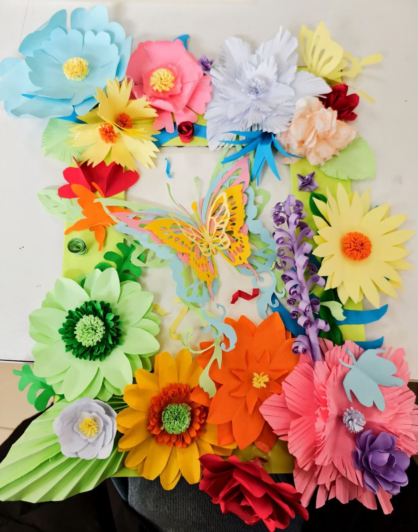 活动期间,同学们以素白纸张为载体,将思绪与灵感凝于笔端,以铅笔细致勾勒轮廓。接着,大家手持剪刀沿线条裁剪,指尖与纸张的摩挲间,平整纸面被雕琢为圆润花瓣、棱角分明的几何块等多样形态。在折叠塑形环节,同学们将花瓣边缘向内弯折,营造自然弧度;把代表枝桠的纸条反复折叠,打造立体筋骨;将细碎纸片层层叠加,通过色彩深浅交错、形状大小呼应,构建出层次丰富的作品。最终,结合作品创意与完成度综合评定,来首月、郭奕菲等四位同学凭借独特的设计和出色的作品获得一等奖。