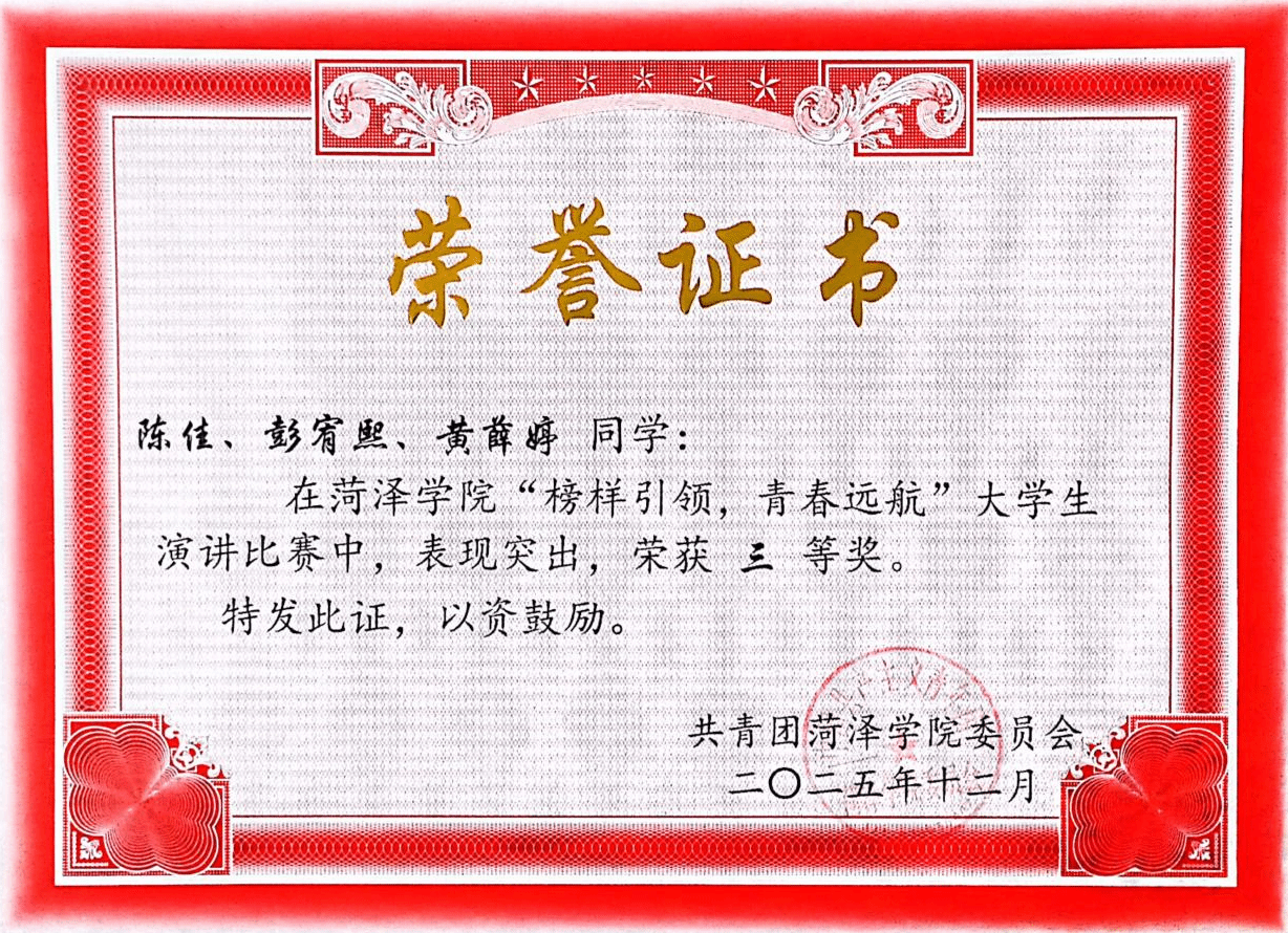 12月21日,菏泽学院“榜样引领,青春远航”大学生演讲比赛决赛顺利举行,单县分校三位选手凭借出色表现荣获三等奖。