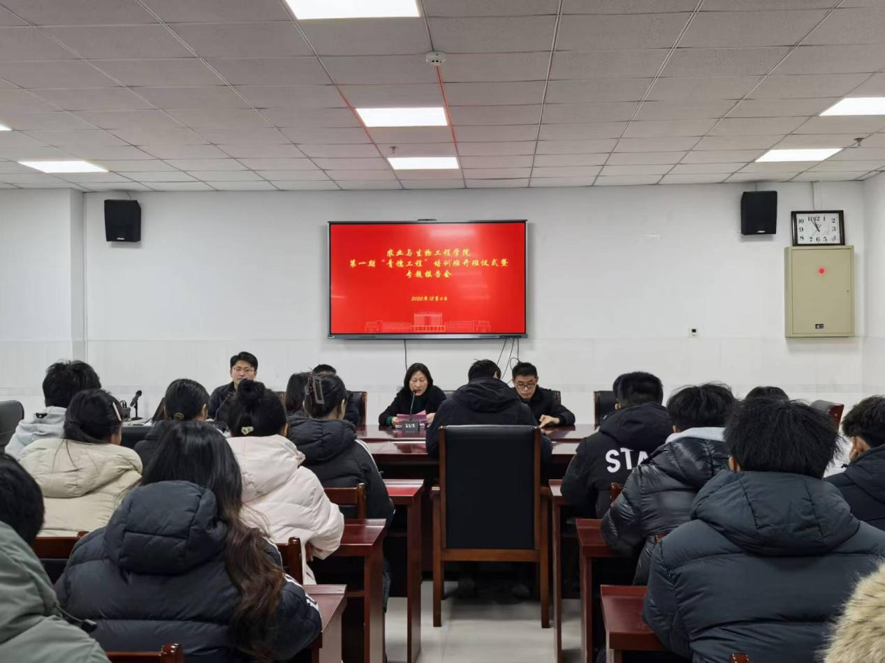 12月4日下午,农业与生物工程学院第一期“青穗工程”培训班开班仪式暨专题报告会在综合实验楼W222会议室隆重举行。学院党委书记刘燕,党委副书记赵忠华,学工办主任许修垒,全体辅导员以及首期培训班全体学员参加了本次活动。仪式由辅导员王太行主持。
