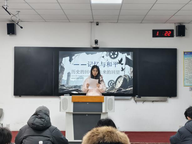 活动期间,来自各个班级的选手围绕“记忆与和平”主题,结合历史史实与自身感悟,深情讲述了那段山河破碎的苦难岁月,生动诠释了国家公祭日的设立意义。选手们的演讲各有侧重:或追忆先烈抗争事迹、或阐述和平生活的来之不易、或立足青年身份抒发强国担当,真挚的情感、铿锵的话语引发全场师生强烈共鸣,现场不时响起热烈掌声。