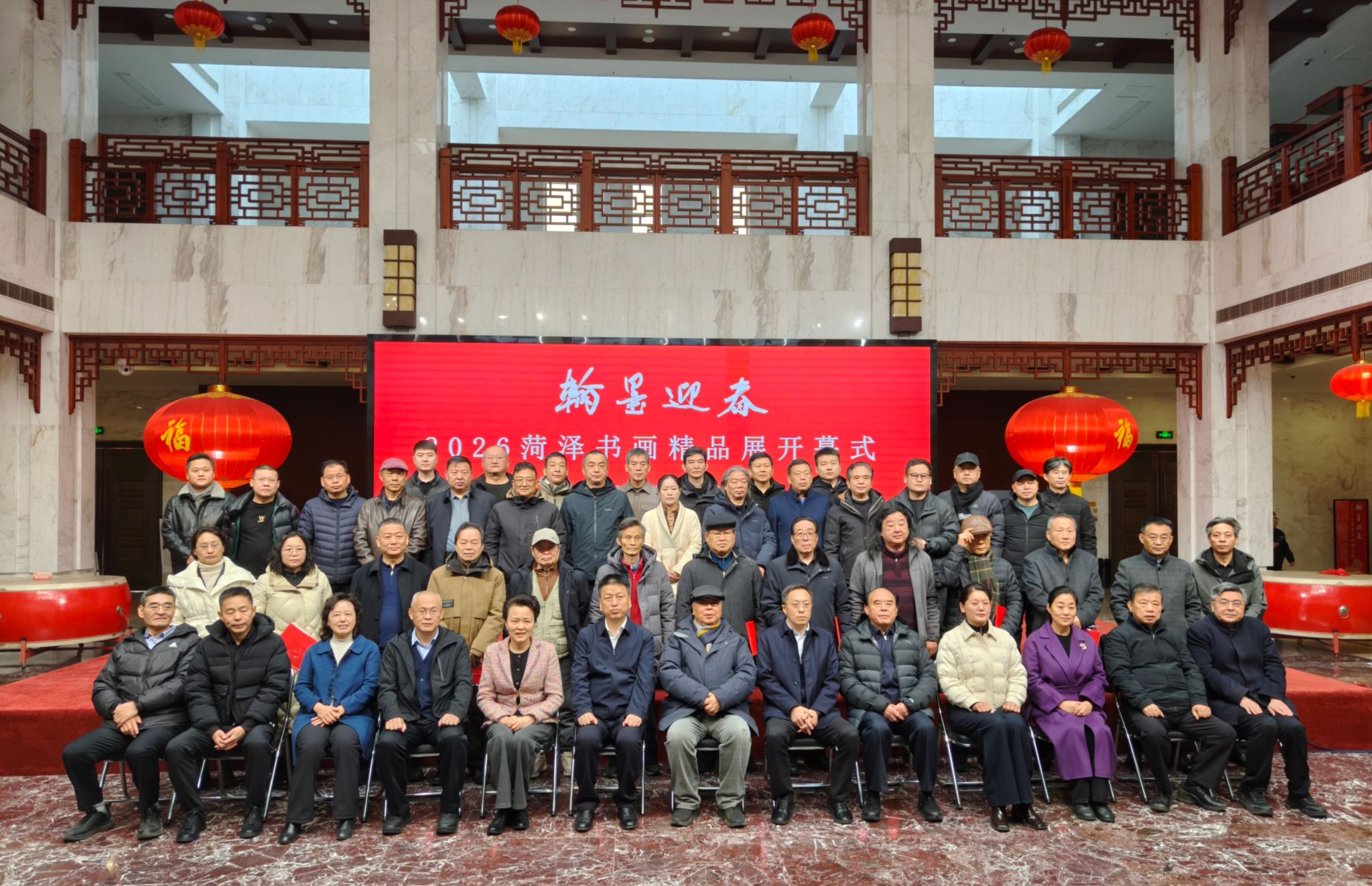 为厚植师生艺术素养,深挖传统书画创作精髓,12月31日上午,菏泽学院美术与设计学院院长高卓、美术系主任刁国强、书法系主任张海同及美术学、书法学专业师生代表一行人员,赴菏泽市李荣海美术馆参加“翰墨迎春 2026菏泽书画精品展”开幕式。