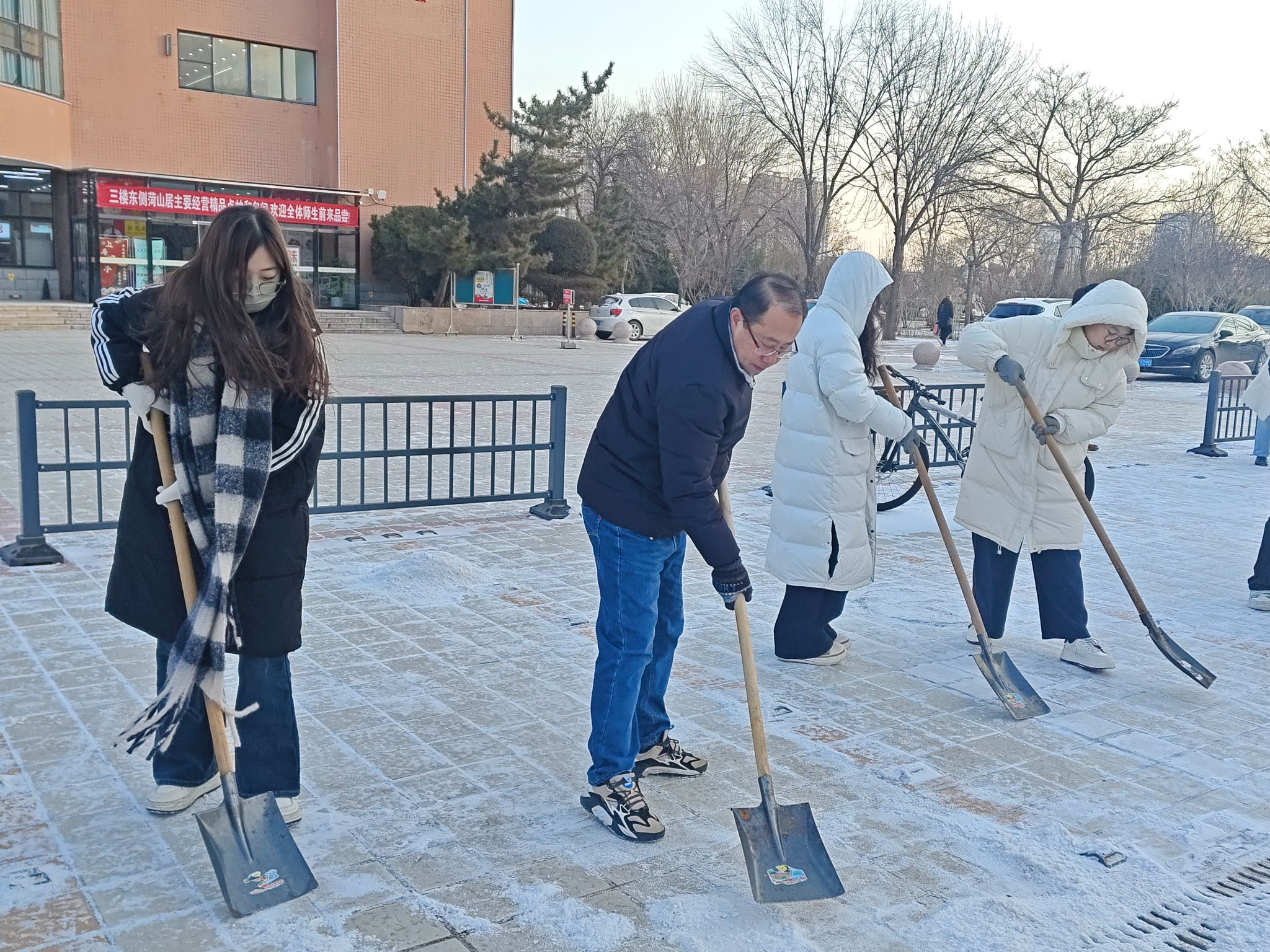 1月20日清晨,由菏泽学院药学院团委组织的校园扫雪除冰志愿服务活动在雅苑门口顺利开展,药学院学工办主任初汉平、辅导员王春和李天水带领2025级部分学生参加。