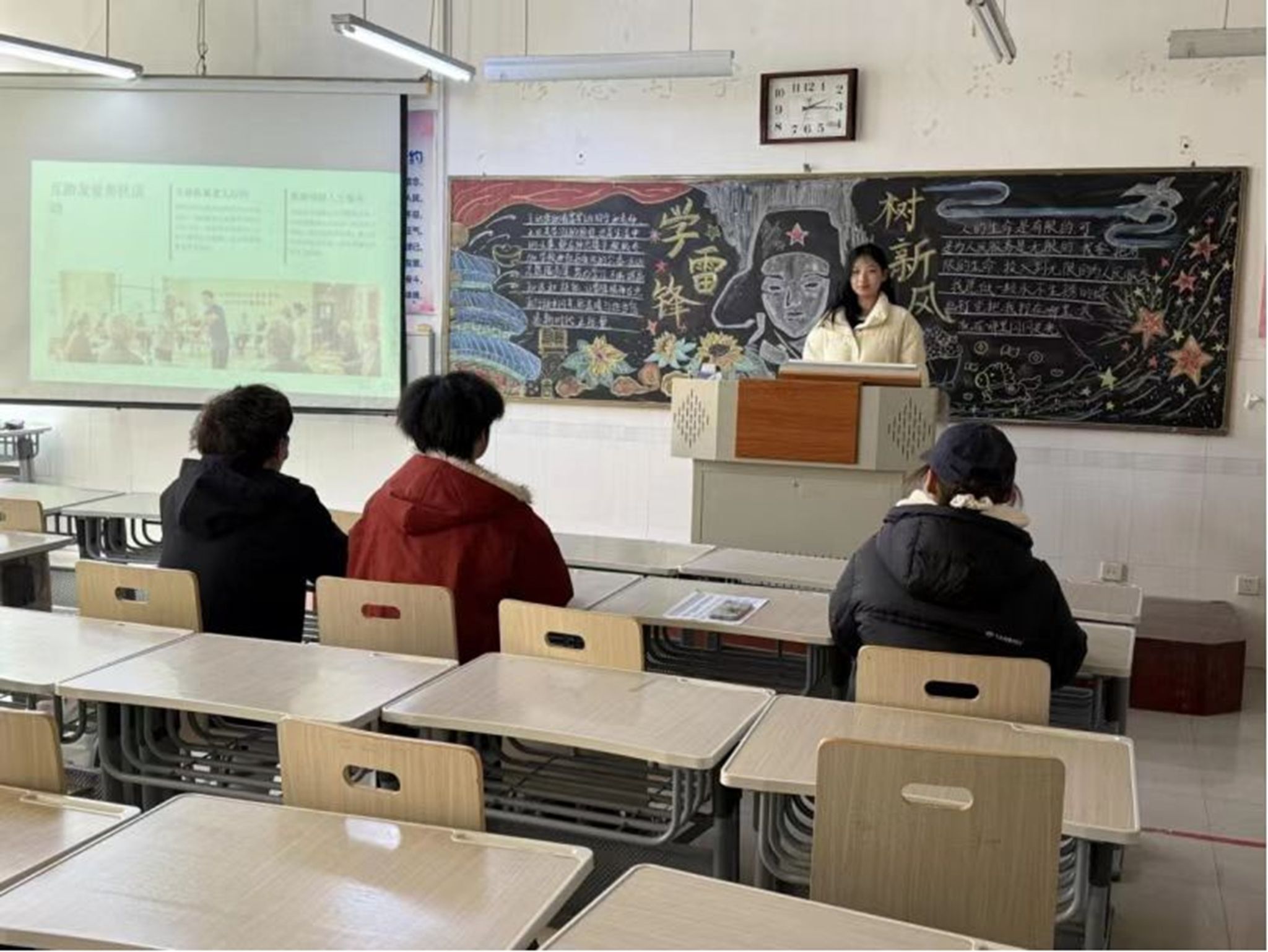 物理与电子工程学院举办主题宣讲会,邀请优秀志愿者代表结合亲身经历,用鲜活的志愿服务案例、感人的奉献故事,解读雷锋精神在当代的内涵与价值。现场互动热烈,同学们在聆听与交流中深化对雷锋精神的理解,纷纷表示要将“螺丝钉精神”融入学习与生活,在志愿服务中勇夺桂“锋”,让雷锋精神在新时代焕发新活力。