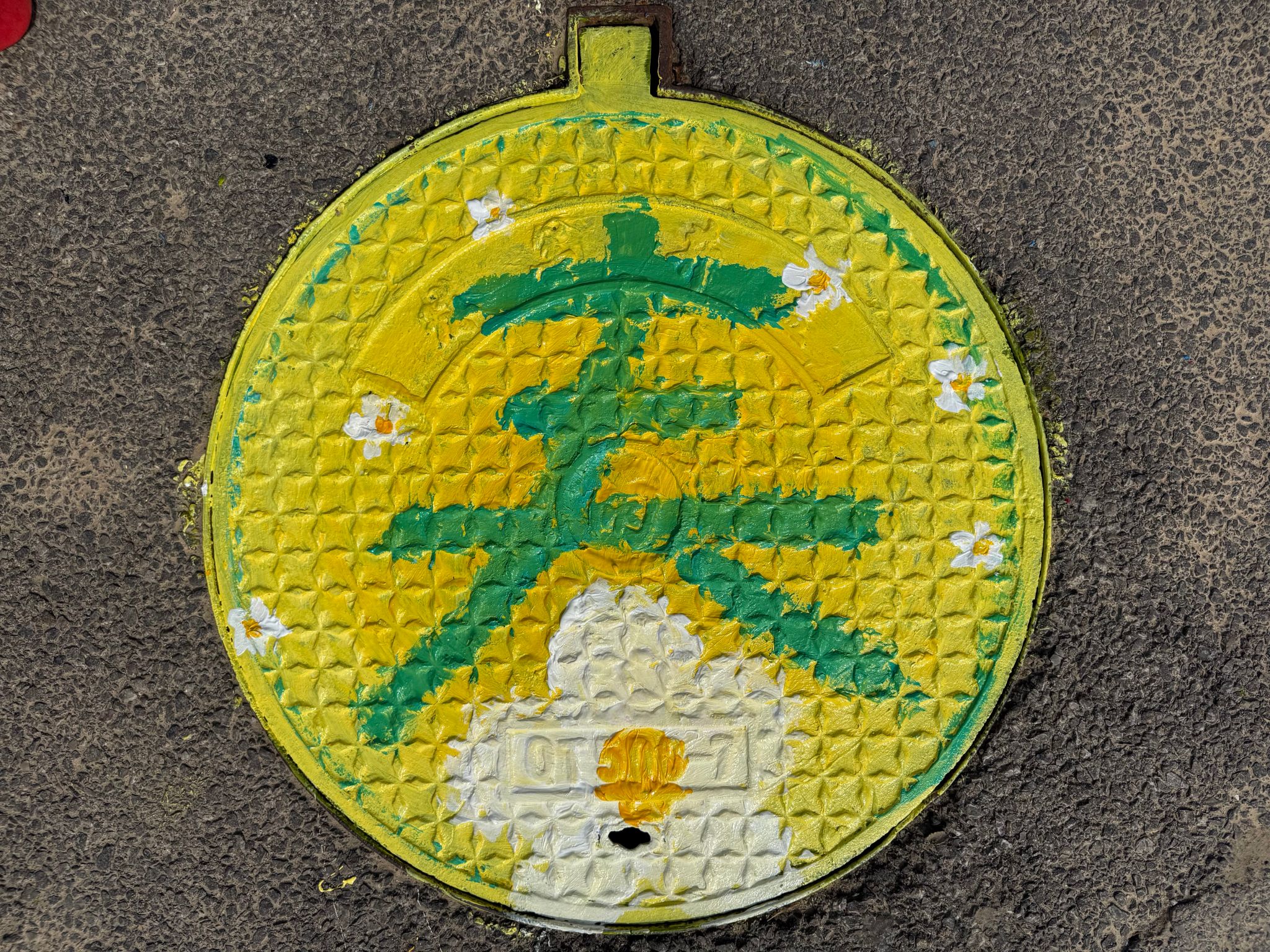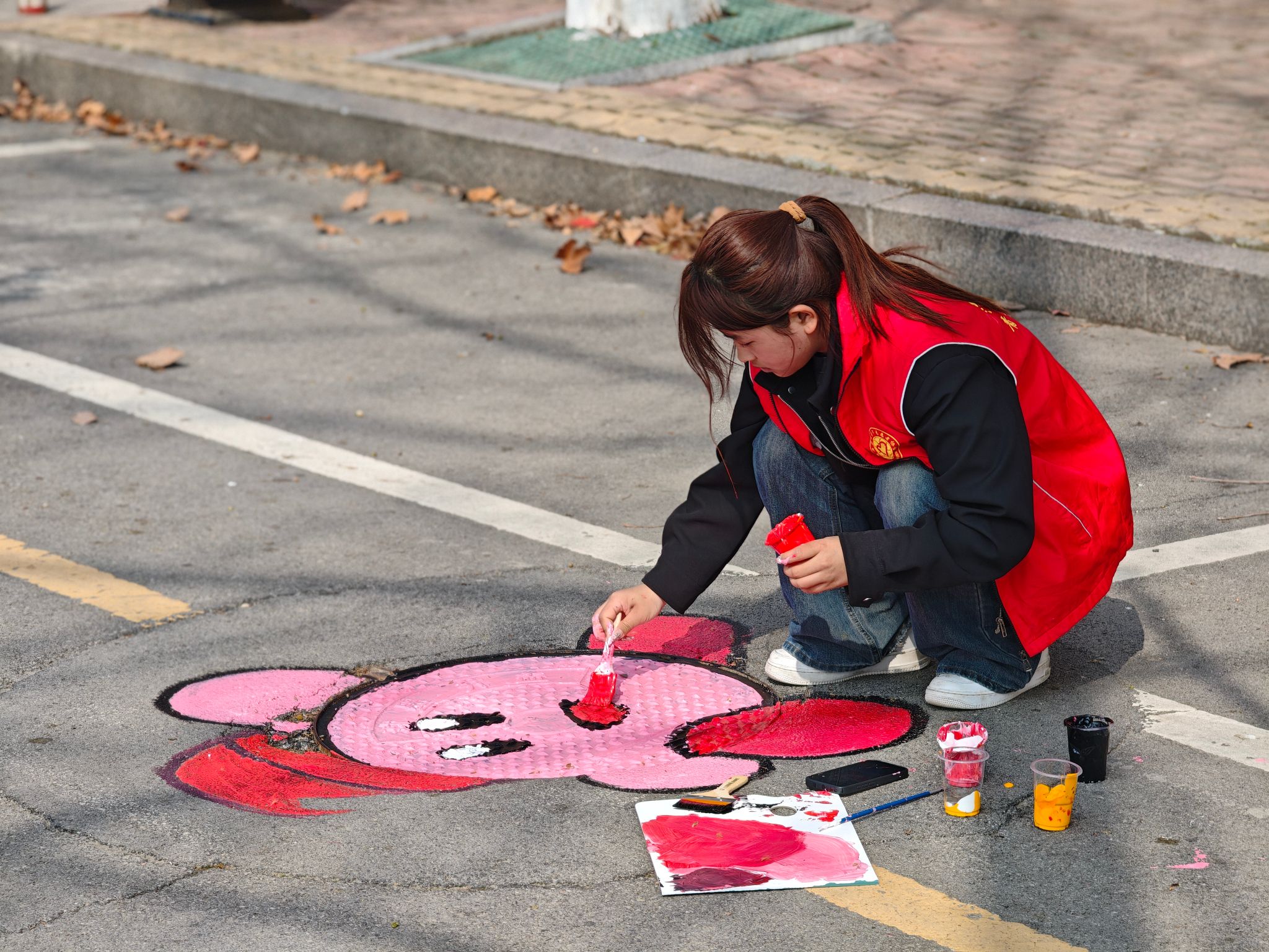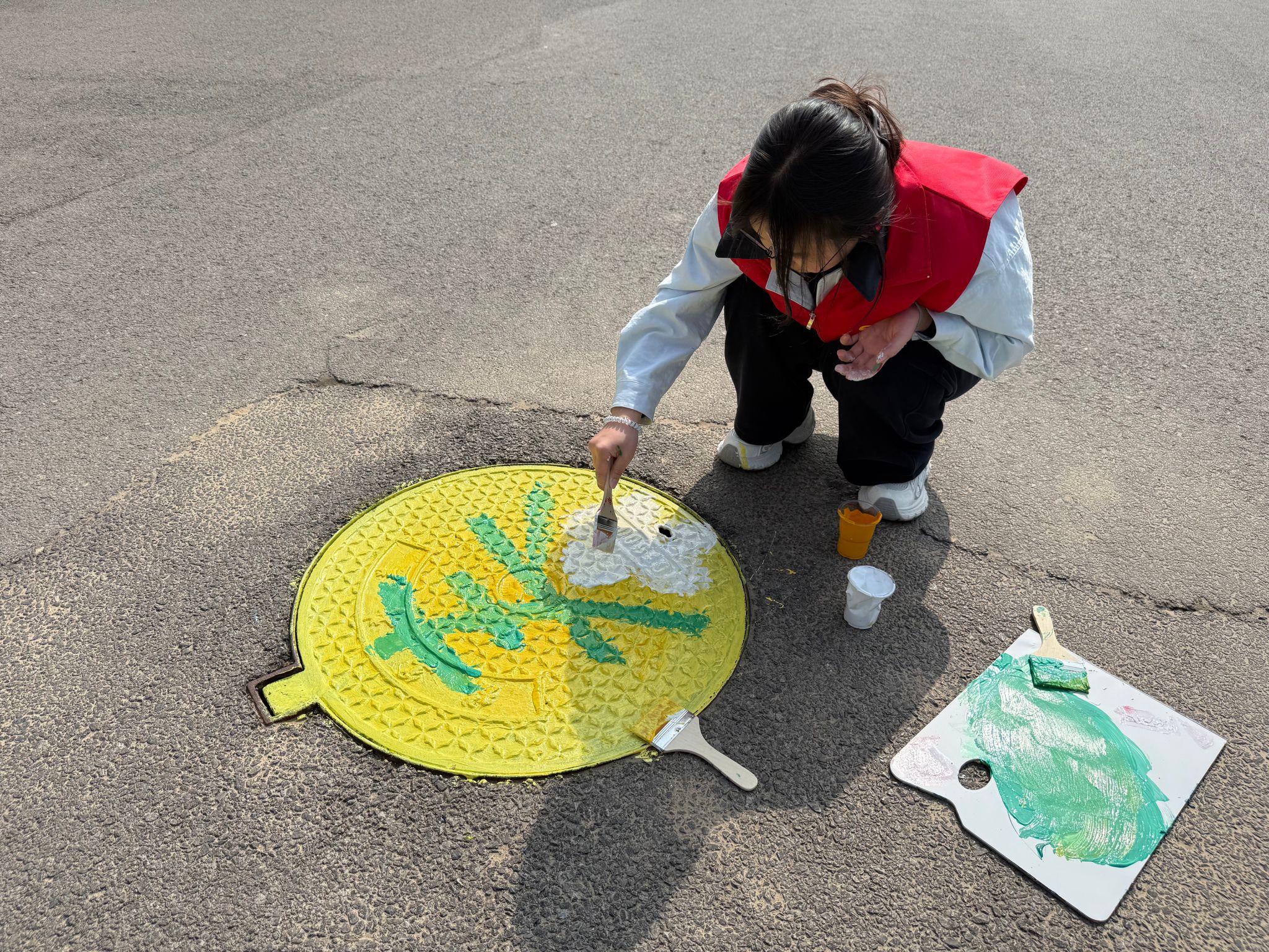 活动期间,美术与设计学院青年志愿者以小组为单位,携带专业绘画工具与环保颜料,以东院主干道、图书馆周边井盖为画布开展创作。作品紧扣校园文化、青春主题,结合专业特色,风格多样、创意十足。 绘画过程中,志愿者们或以细腻笔触勾勒精美纹样,或以明快色块铺陈活力画面,作品涵盖清新治愈的动植物形象、充满童趣的卡通人物等多种类型。经过精心创作,原本单调的井盖焕发出全新生机,成为校园里一道独具特色的青春风景线。