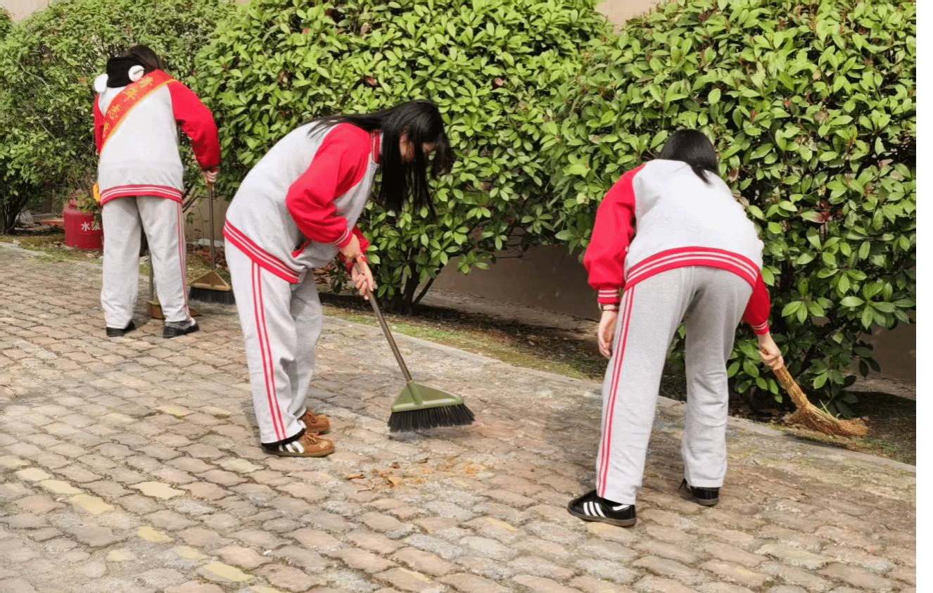 校园绿化带与公共区域内,同学们手持清洁工具,弯腰捡拾落叶、杂物与垃圾,仔细清理围栏缝隙中的污渍,不放过任何一处卫生死角。大家分工协作、干劲十足,忙碌的身影穿梭在校园的各个角落,用汗水擦亮校园文明底色,让整洁优美的校园环境成为雷锋精神最生动的注脚。