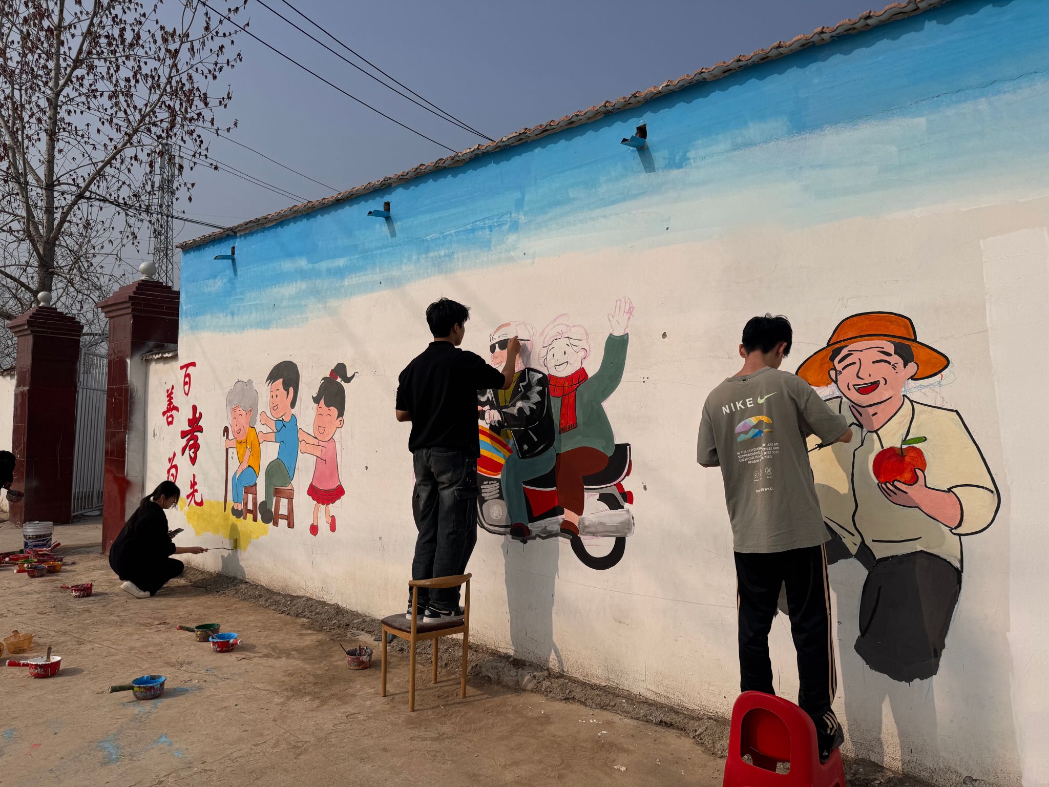 为弘扬敬老爱老传统美德,用艺术温暖老年生活,3月21日至22日,美术与设计学院组织志愿者前往成武张楼镇大陈楼村助老综合中心,开展主题墙绘志愿活动,以青春画笔为老人们打造温馨舒适的生活环境。