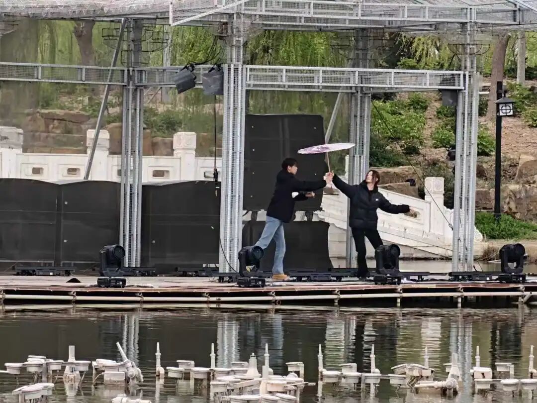 排练现场,师生们迅速适应户外实景舞台的空间与环境,从动作细节、队形调度到与舞台光影、水景的配合,全情投入、反复打磨,确保在牡丹节会期间,为海内外游客呈现一场兼具艺术美感与文化底蕴的视听盛宴。